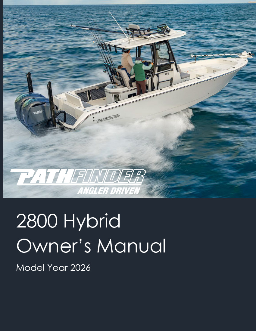 Your Pathfinder comes pre-wired for a trolling motor standard and also comes with backing plates that are laminated into the bow for trolling motor mounting. A 60” shaft trolling motor should work for most all applications for all Pathfinder models excepting for the 2700 Open, where an 84” shaft is recommended because of its taller bow. The 2005 TRS, 2200 TRS and 2200 TE are pre-wired with a 24-volt system (2 trolling motor batteries) and perform well with an 80lbs thrust trolling motor in the large majority of conditions. The 2300 HPS, 2400 TRS, 2500 Hybrid, 2600 HPS, 2600 TRS and 2700 Hybrid are pre-wired with a 36- volt system (3 trolling motor batteries) to accept trolling motors with over 100 lbs of thrust. It is advised to have your local Pathfinder dealer install your chosen trolling motor. However, if you plan on installing the trolling motor yourself you can find diagrams showing the trolling motor wiring and the location and size of the backing plates in your model’s owner’s manual along with basic mounting instructions.
